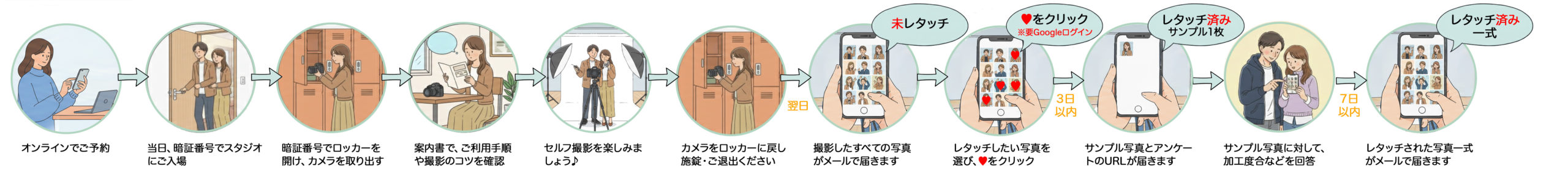 本サービスは、当スタジオが運営するセルフ撮影スタジオの利用に付随して、一眼カメラのレンタルと、撮影された写真のレタッチを提供するサービスです。